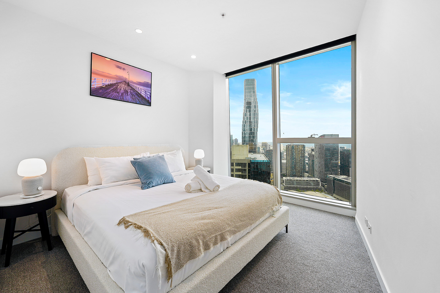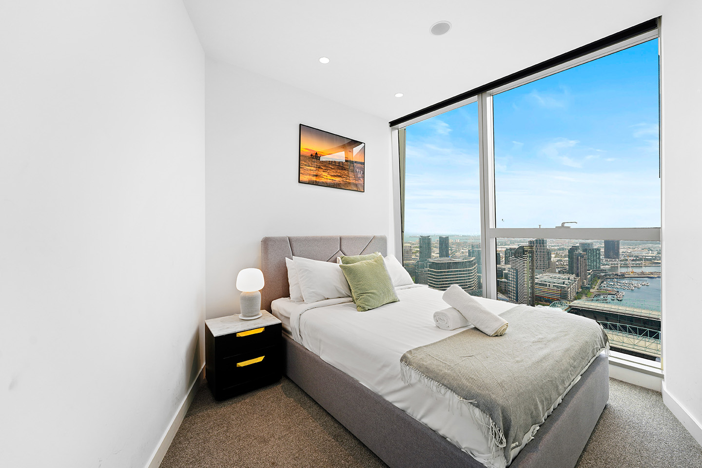 The property experiences spectacular views across the city, Port Phillip Bay and Docklands, which are never-to-be-built-out with Southern Cross and Marvel Stadium directly opposite. You can enjoy the most breathtaking sunset view in Melbourne.